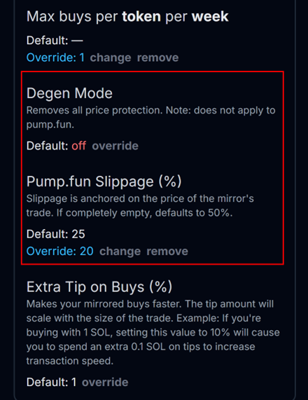 Disabling Degen Mode helps filter out extremely risky tokens. (Does not apply to Pump.fun transactions)